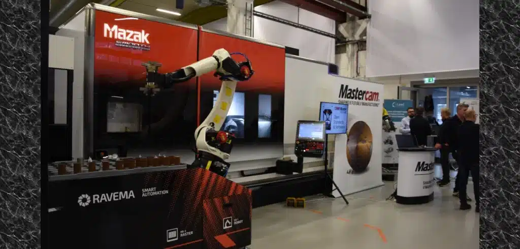 När Ravema genomförde sitt Christmas Expo demonstrerades flera exempel på hur automation kan utföras. En av lösningarna som visades bestod av en Mazak Integrex i-250H S som betjänades av Ravema Smart Automation.