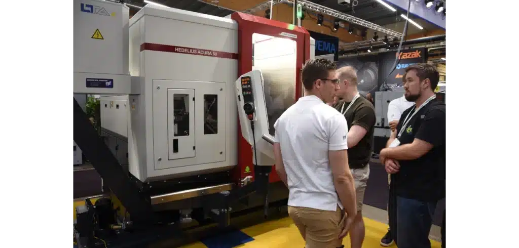 MaskinFransson hade fyra maskiner i montern bland annat Hedelius Acura 50. Det är en kompakt och kraftig femaxlig fleroperationsmaskin som kan utrustas med olika alternativ när det gäller spindeln, 14 000, 18 000 eller 24 000 rpm.