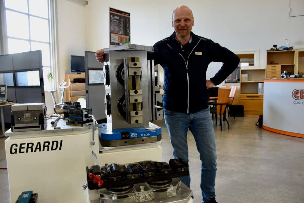 Edeco Tool deltog hos LPV Verktygsmaskiner. Edeco kan bland annat erbjuda kunder kompletta system för uppspänning och har ett brett program av maskinskruvstycken och skruvstyckskuber. På bilden ses Fredrik Carlsson, produktchef för borr-, gäng- och brotschning på Edeco Tool.