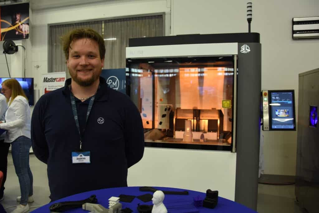 Joakim Karlsson är teknisk specialist och arbetar med support på PLM Group som har många strängar på sin lyra. Företaget säljer bland annat maskiner för additiv tillverkning och är återförsäljare för 3D-Systems, HP och Markforged. I bakgrunden ses en SLA 750 från 3D Systems.