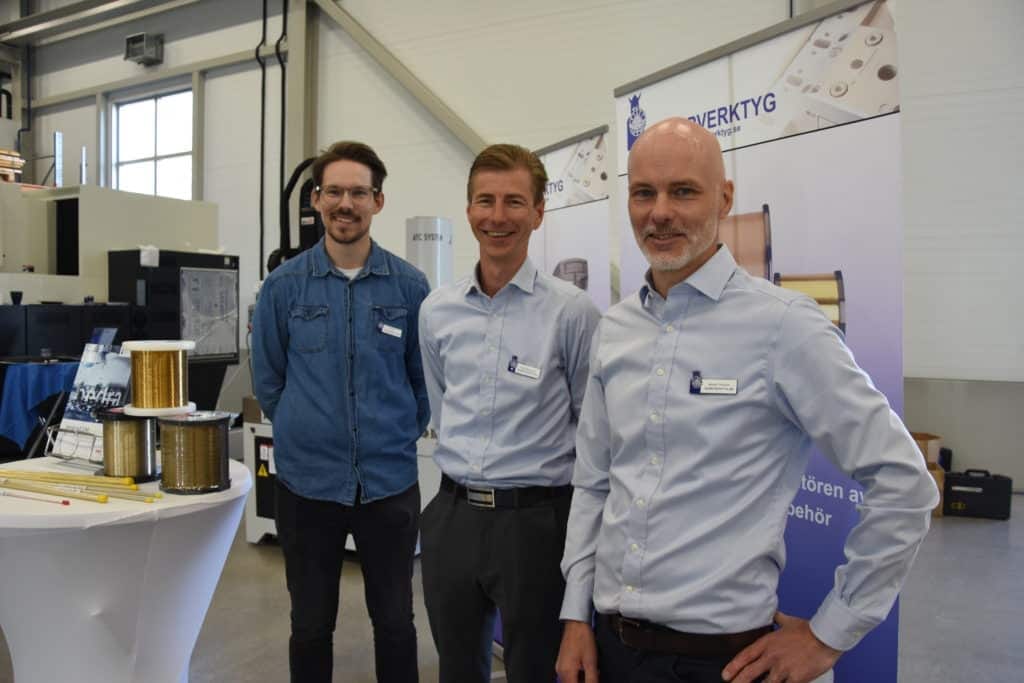 Närmast kameran står Mikael Persson, Peter Magnusson och Pontus Wiseby, samtliga från Skärpverktyg.