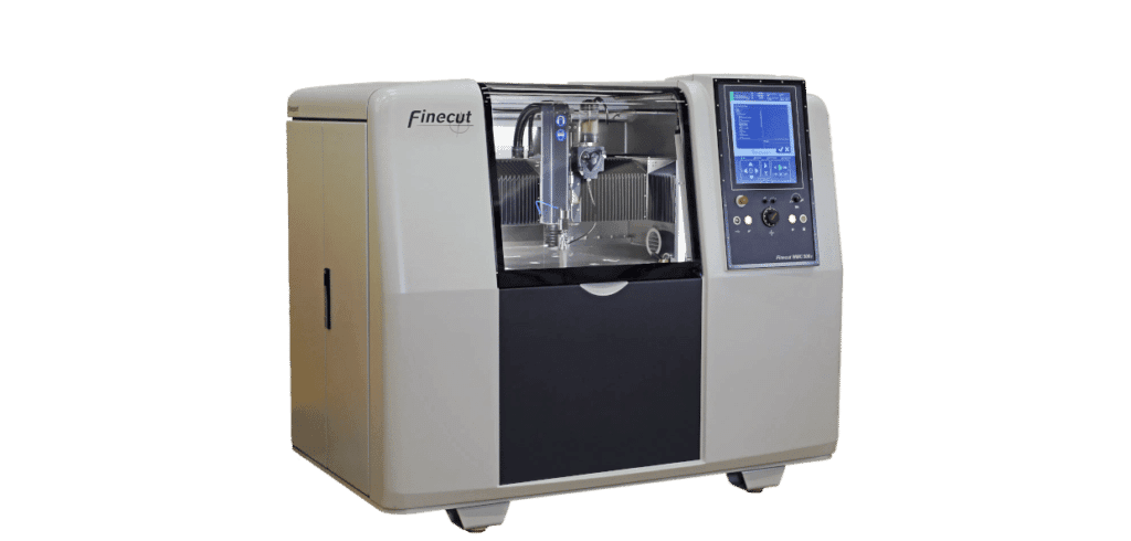 I en Finecut utförs mikro-vattenskärning, vilket ger möjligheter att bearbeta i nya och svårbearbetade material som efterfrågas i bland annat elektronikbranschen och inom finmekanisk industri.
