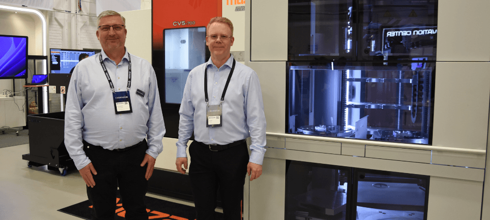 Robot Compact 150 har redan visats i Sverige, det var under Ravemas julexpo. Palettmagasinet var placerat intill den femaxliga fleroperationsmaskinen Mazak CV5-700 som även den är helt ny på marknaden. CV5-700 har ett bord med diameter 650×500 mm, maskinen klarar arbetsstycken upp till diameter 700×450 mm och maximalt varvtal på spindeln är 12 000 rpm.
