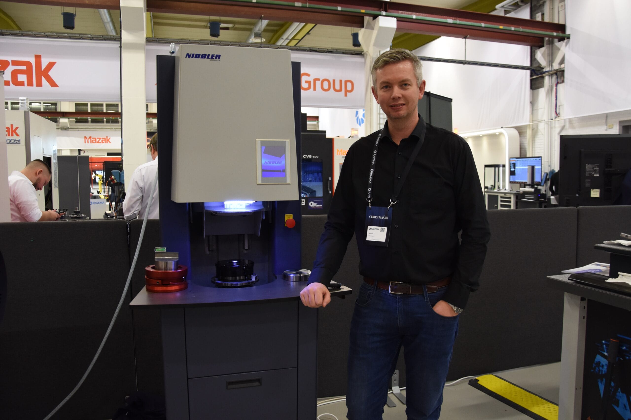 Nibbler fanns på plats hos Ravema och visade sin Grindmaster. Den är konstruerad för att snabbt och enkelt skärpa stansar och dynor till alla fabrikat av stansmaskiner. Maskinens automatik gör att operatören inte behöver övervaka slipningen utan kan ägna sig åt stansmaskinen medan verktygen slipas.
