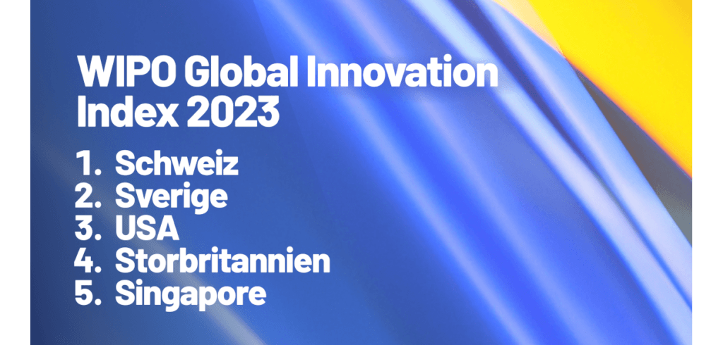 Sverige placerar sig på andra plats när världens mest innovativa länder rankas i FN:s immaterialrättsorganisation WIPO:s årliga mätning Global Innovation Index. Det är sextonde året i rad som Sverige rankas som topp tre i världen.