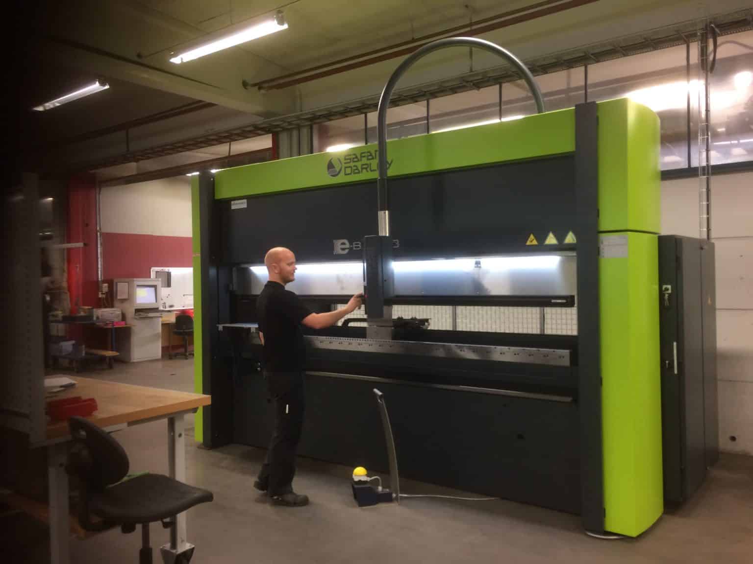 Kantpressen är en SafanDarley E-Brake med en presskraft på 100 ton och en bocklängd på tre meter. Kantpressen har en servoelektriskt driven pressbalk vilket möjliggör höga presshastigheter och hög noggrannhet.